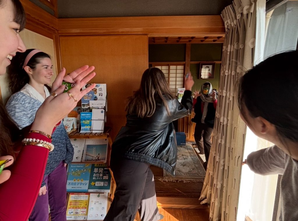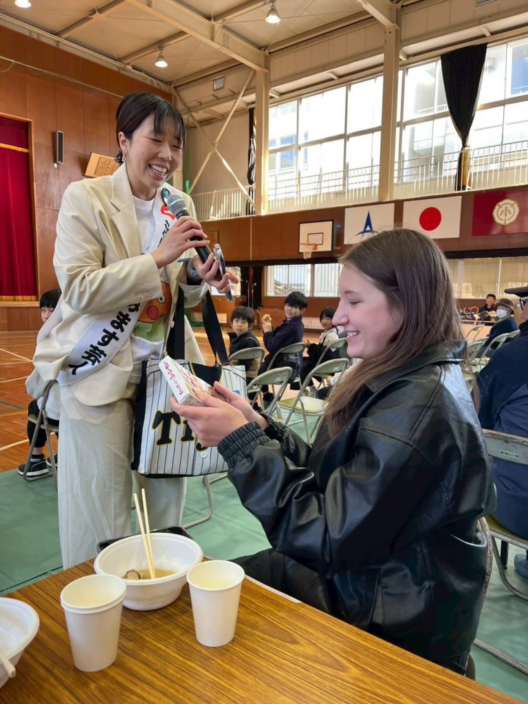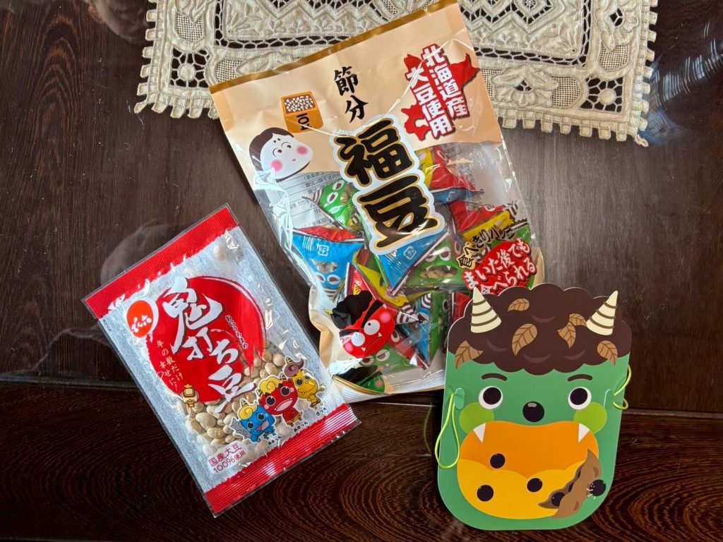 日本の伝統的な行事のひとつである「節分」は、季節を分けるという意味を持ちます。季節の境目には邪気が入りやすいとされているため、節分の日には邪気を払うために豆まきを行います。地域ごとで掛け声は異なるようですが、今回は「鬼は外、福は内」という掛け声で豆まきを行いました。海外からの移住者のみなさんもノリノリで豆まきをしていました。鬼のお面をつけ、スカーフを巻き、怖い鬼になりきってくれました。
