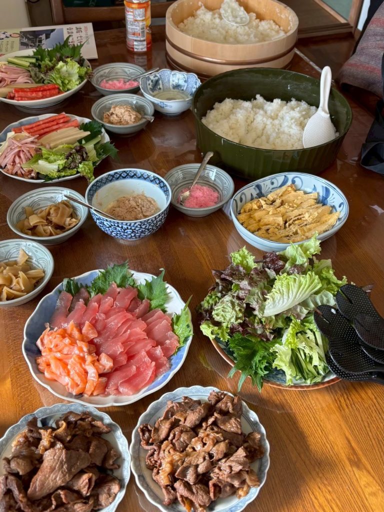 今回は、好きな具を選んで各々巻いていくスタイル。みんなで机を囲み、初めての方には作り方をレクチャーしながら、和やかな雰囲気で楽しく行うことができました。恵方巻を黙々と食べていると、思わず笑いがこみあげそうになりましたが、堪えて最後まで食べきりました。